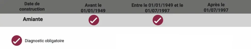 Le diagnostic amiante s’attache à déterminer si des matériaux ou des produits contiennent de l’amiante au sein d’un logement. Ce diagnostic est obligatoire pour tous les logements (à savoir maisons individuelles, appartements et dépendances) dont le permis de construire est antérieur au 1er janvier 1997.