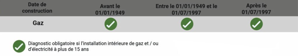 La réalisation d’un diagnostic gaz doit être faite lors d’une vente immobilière ou d’une location. Les appartements ainsi que les maisons individuelles doivent se soumettre à cette obligation lorsque l’installation de gaz a plus de 15 ans ou lorsque le certificat de conformité remis à l’issue du diagnostic a plus de 15 ans. Une fois réalisé, le certificat de diagnostic gaz devra être annexé à la promesse de vente, à l’acte de vente ou au contrat de location. Généralement, le vendeur ou le bailleur l’intègre au DDT, autrement appelé dossier de diagnostic technique.